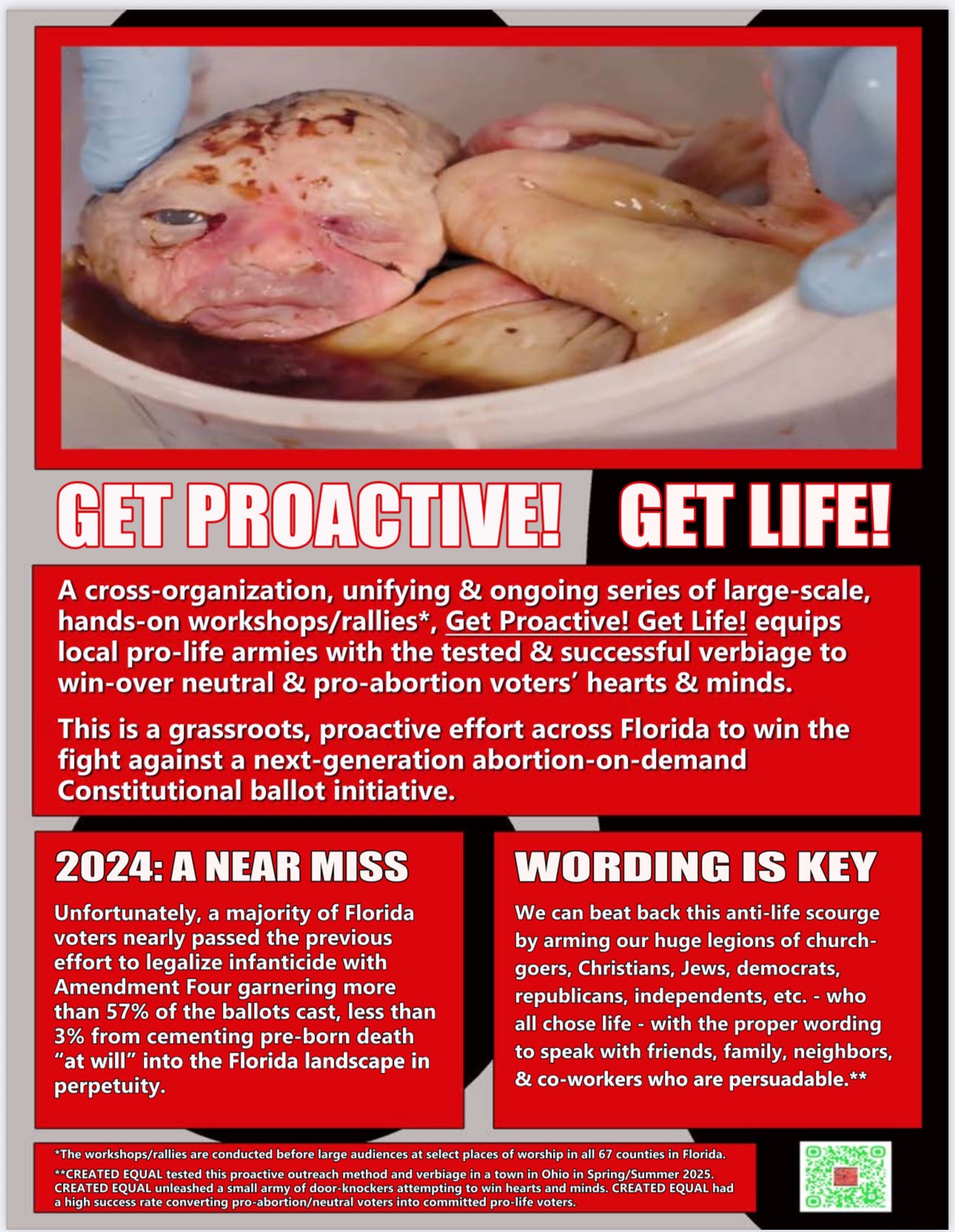 A cross-organization, unifying & ongoing series of large-scale, hands-on workshops/rallies*, Get Proactive! Get Life! equips local pro-life armies with the tested & successful verbiage to win-over neutral & pro-abortion voters’ hearts & minds.** This is a grassroots, proactive effort across Florida to win the fight against a next-generation abortion-on-demand Constitutional ballot initiative.